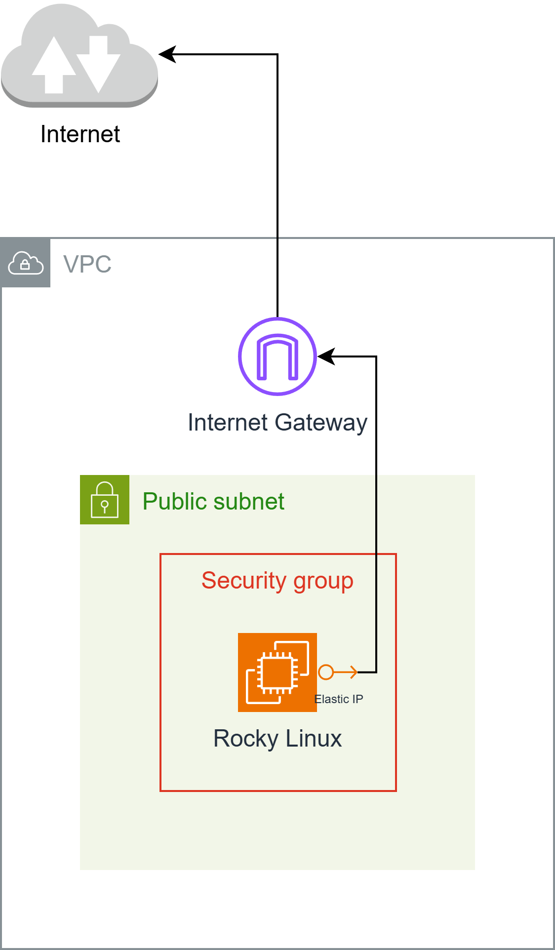 Rocky Linux の AMI イメージには、Instance Connect パッケージがなく、マネジメントコンソールからの接続ができない。 そのため、パッケージをインストールする。